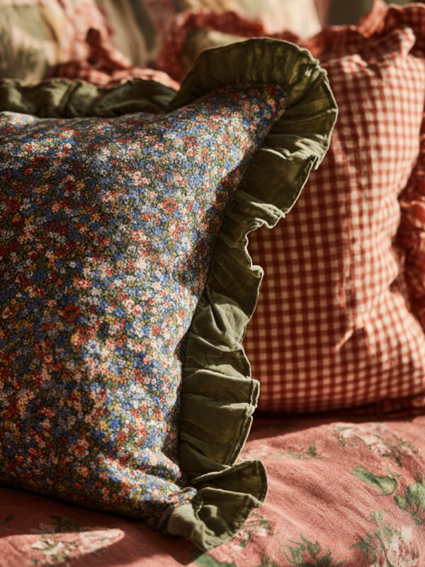 Almohadones con forma, estampados de pana o en percal, con relleno. Apto lavarropas.